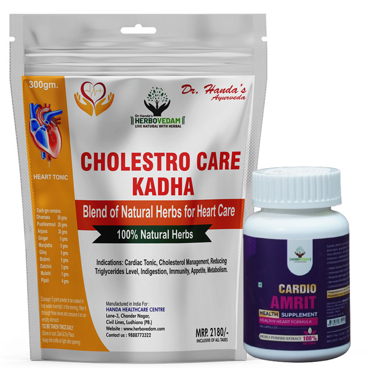Introducing our Cholestro Care Kit, an Ayurvedic solution crafted to support heart health and manage cholesterol levels naturally. Designed with simplicity and effectiveness in mind, our Cholestro Care Kit is your ally in promoting a healthier heart and a balanced lifestyle.