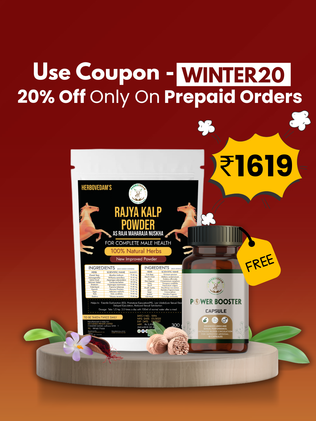 Ignite your vitality with the Ayurvedic Herbovedam Raja Maharaja Nuskha—a special mix of Ayurvedic goodness for men's sexual terms. It's like a secret recipe to boost your energy and make your intimate moments more exciting. Embrace the Maharaja in you and step into a world of well-being.